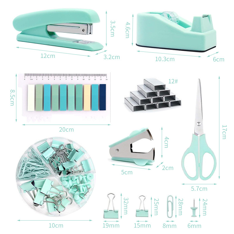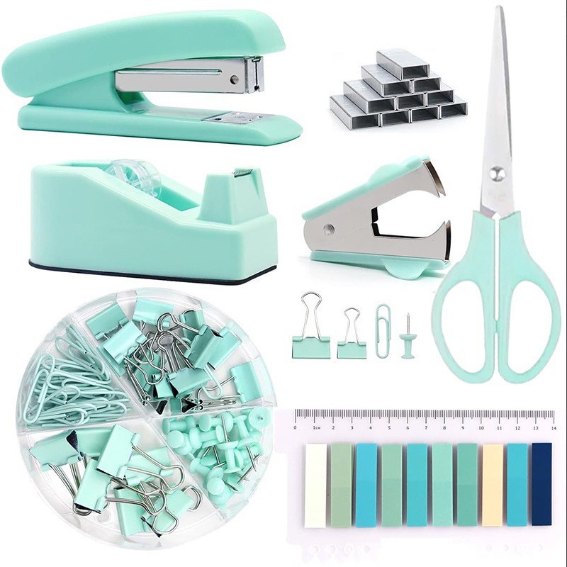 Macaron-colored student stationery set, office stapler, nail remover and tape holder combination set.