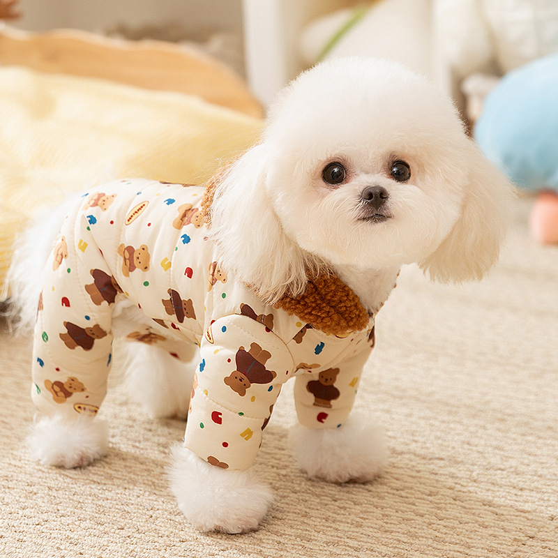 [One-piece design] Puppy set with legs, round neck, long sleeves, warm design to protect healing scars, allergies or other skin problems and prevent licking and scraping during recovery; The style of the onesie is perfect for going out or wearing at home.