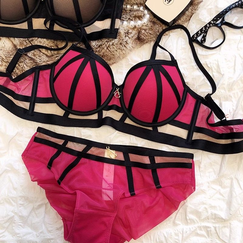 Sexy pink bikini and black ribbon wrapped design underwear set
